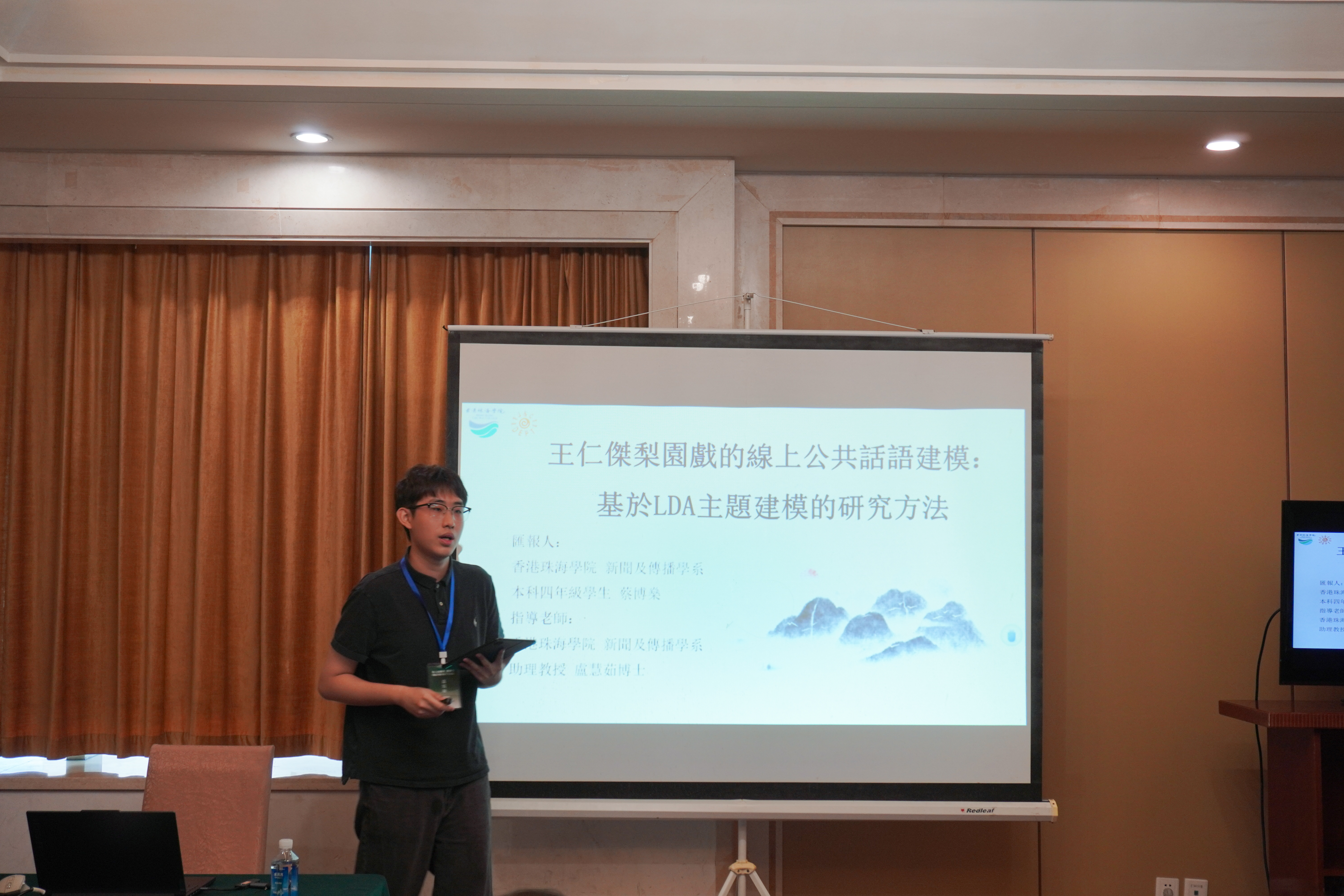 新聞及傳播學系本科生蔡博燊於2025年9月20日出席「第七屆翻譯、修辭與國際傳播國際學術論壇」,並發表題為《王仁杰梨園戲的在線公共話語建模》的研究報告。研究運用LDA主題建模方法,探索傳統戲曲在數字媒體中的話語特徵與傳播模式,獲得多位學者關注與交流。