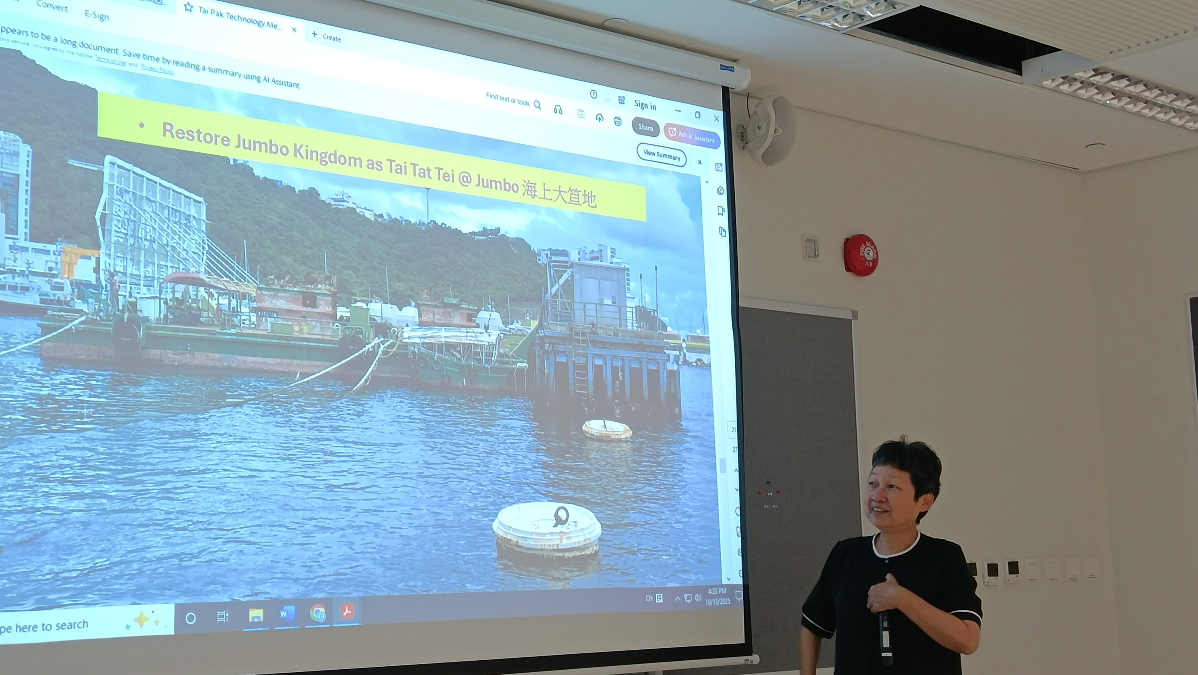 她指出,香港仔在香港百多年歷史中佔有重要地位,其獨特的華南水上人文化遺產,是推動文創旅遊的寶貴資源。其中,現時香港僅存的太白海鮮舫,不僅具高度藝術與文化價值,更見證了香港的經濟與社會發展,是香港仔文創產業的重要元素。